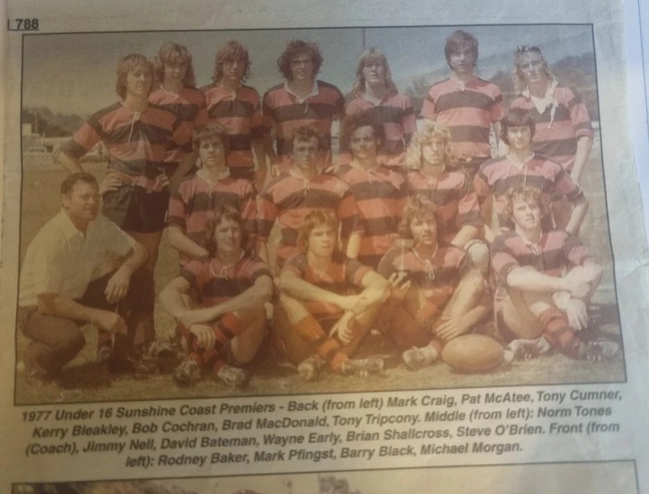 1978 saw the A Grade, captained coached by Doug Champion, go within a “no try” by front rower Wayne Porky Davis to go down to Caboolture in a thriller. The Under 18, captained by Shane Bleakley and coached by Wayne Krisanski were undefeated premiers. The U16 coached by Alan Watson and then Gary Tones got to the grand final going down to Nambour Souths. This year saw Russell Klein represent the U18’s Sunny Coast Falcons, Wide Bay and Queensland. A feat unmatched by any other Rivers player.